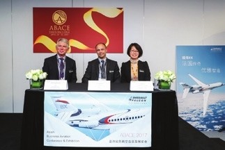 今年的亚洲公务航空会议及展览再次展示超远程级别公务机中的最新款——达索航空猎鹰8X以及猎鹰2000LX/EX。达索航空主席兼首席执行官Eric Trappier说:“所有的客户对我们这款旗舰公务机都给予了很高的评价。”