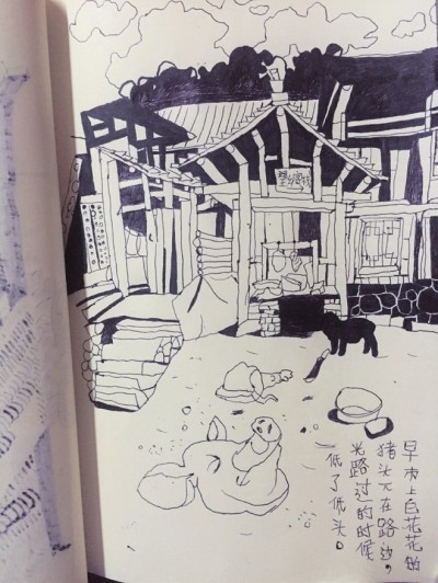 在这个上海姑娘李九九笔下,古村落美得安静从容,有着生活的温度。她说,插画已经成为她生命中挥之不去的一部分,彼此成全,共同历经成长。 她画下了中国最美古村落 她叫李九九,自由插画师,是个开朗健谈的上海姑娘。在去西藏林芝写生之前,她的工作状态是每天满打满算,同时接很多项目,忙得没日没夜,身心交瘁。李九九说自己的最高纪录是,一天之内画了60张黑白稿。她还曾经三天两夜一眼未合,完全沉浸于插画的创作里。 与其说,是林芝这个非物质文化遗产的写生项目找到她,不如说是林芝挽救了她的生活状态。这更像是一根救命稻草,把她的身心挽救于惯常忙碌却不规律的生活之中。一下子,生活节奏变慢了,就连创作的土壤也变得丰厚了。 2015年下半年,有半年时间李九九就一直呆在林芝地区的五个古村落,她用插画记录当地人的生活。李九九每天的生活,就是穿山走村,在不同的村落里体验当地生活,最后把自己的观察原汁原味地呈现于插画里。 能在一个地方身居半年,对这些藏族古村落的了解已经不是一般意义上的过客心态。当你对所画之物,投入了更多情感,那么这些作品便会拥有更多的灵性,对当地的观察也更加细致入微。半年,100多幅画作。按照这个项目的要求,大多数的古村落素描都是黑白系列,不需要加入过多修饰和想象,还原这些村落最真实的状态。可惜,因为这个写生项目的进度和版权原因,李九九的画暂时还不能和大众见面。 雪山绿水间的古迹遗存 “天下美景千万座,只有巴松不露面”,巴松措也叫错高湖,因为坐落在错高湖边上的村子就叫错高村。错高的藏语音译,就是湖头的意思。巴松措曾被认为是中国境内最美的古村落。李九九参与的创作主要集中于巴松措的5个主要村落,让她印象最深的就是错高村,“大多数来这里旅行的人,在距离错高村1个多小时的湖心岛就已经折返,很少有人真正进入错高村腹地。” 错高是一个出美女的地方。错高之美,不仅在于美女,还在于它是工布地区唯一完整地保持了工布藏族传统村落布局、民居建筑风格、习俗、文化和信仰的村落。这里的民居沿用工布藏族的传统建造方式,因地制宜利用木、石构建房屋,古朴中透着原生态的美。通向散落全村的玛尼拉康、玛尼石堆和经幡柱,串起村民们祈福、转经、祭拜的脚印。 周边的雪山、神湖,以及村民们世代口口相传的古老神话,构成了工布藏胞充实的精神世界,而肥美的牧场和湿地又为他们提供了足以依赖的生存空间。错高村就这样安然镶嵌在雪山绿水之间,续写着工布藏族古老的文化。村里的许多房屋均历经四五代,属祖辈自建,至今已有100到300余年的历史。工布藏族在几百年的历史长河中仍保存原有的建筑风格与生活方式。居民住宅内仍使用原始灶炉,家具均为手工制作,建筑及生活生产用具等均保存着原始的特征。 当你不再只是过客 印象中,第一次进村时,李九九就被眼前的一幕惊呆了。那里的树木特别野,树枝的形态本来就很好看,加上村子里石头屋子的映衬,被沉淀的年华,让这些石头屋子的颜色也沉淀得深沉,周遭的树木山川饱含着岁月的洗礼,一草一木、一房一人都是和谐共生的美感。 时间沉淀,打磨成房子里的印记,岁月的印痕,祖祖辈辈几代人生于斯,长于斯,种种生活的细节历历在目,人与自然融为一体。青冈木是这里高产的树木,九九没有求证过,但是听说当青冈木倒下,腐烂之后,成为土地丰沃的养分,这里便成了孕育松茸的沃土。巴松措的松茸据说是最好的,这里土壤肥沃,水土精良。 李九九一直想要寻找这样一种状态,在一个地方待腻了的那种状态:“浅观察都是因为惊讶,在兴奋头上,你会被你的惊讶止住脚步,不可能更深入地了解一个地方。而当你更走向深入,它也许不再那么耀眼,但是更能看清当地的原生态。”九九觉得过了新鲜期后,她对巴松措的观察走心而深入。 这个方法奇妙在:刚开始,她并不太确定,自己是以什么样的身份进入的,但是慢慢地就找到了自己合适的位置。有些古村落,离文明很远,甚至于村民们很多人连汉话都不会说。有些村落因为传统技艺而出名,比如织氆氇;有些村落经历了城市进程下发生的改变,新造的房子和老房子共存。在历史长河里,它可能是很微不足道的一笔,却也经历着不可逆转的变迁。 记忆闪着微光 “在林芝的山里,你只要认识了这几样东西,即便在山中迷了路,也饿不死。”在林芝,遍地都是吃的,李九九眼前浮现出的是一座“零食山”。比如荞麦,“我原来一直以为荞麦是一种谷物,后来到了林芝,才发现它原来根本不像麦子,而是类似于一种小杂草,结的种子就是荞麦,可以生吃,也可以凉拌。” 在山里,遍地都是宝贝。村民还用当地土话,告诉她很多种植物的名字,有些植物有大半个人高,从地里拔下来直接就能当水果吃了,它的根茎粗粗壮壮,吃起来的口感酸酸甜甜,爽口又美味。到了秋天,丹参的花盛开,漫山遍野,用手采下来,吸吮花蕊,口感清甜,当地的孩子都把它当做最可口的零食。 在巴松措参与写生的过程,记忆闪着光。几乎每天,九九都会和当地的伙伴们一起上山,有时去转山的路上,秋天满山遍野是各种各样的果子;到了冬天之后,这些曾经结着果实的枝桠完全变了颜色。“像原来结着果实的刺莓树,叶子掉光了,树干则会自然变成白色。你会觉得这种白色,完全是漆上去的白,它让你对自然产