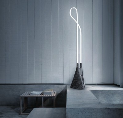 Pavlof Floor Lamp是麻麻木和Benwu Studio合作的产品,其灵感来自美国阿拉斯加至今仍在活跃的著名双口火山Pavlof volcano。大理石底座部分正是模拟了火山的等高线。当灯光从大理石中的强光源射出,借助弯曲的导光材质再次回到大理石当中,恰恰就像火山爆发时炽热滚烫的熔岩从地下冲向天际又落下的瞬间。