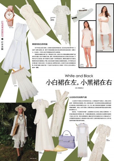 对于年轻女孩们而言,小黑裙未免有些单调沉闷,况且在这样的季节里“小白裙”也更为应景。唯一美中不足的就是女孩们在出席各类活动的时候一定要小心,小白裙上一旦弄上些许污渍就会成为巨大的败笔。