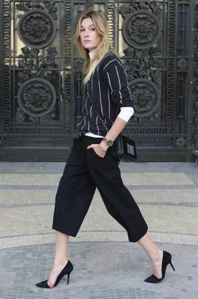想要显得腿长,选择鞋子的时候除了高跟之外,最重要的是鞋子要和裤子同色。