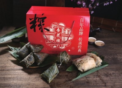 五一假期刚过,离农历五月初五还有不足半个月的时间,吃粽子、过端午的气息已经开始升温了。 过端午,粽子是必不可少的节日食品。随着端午节的临近,各种各样的粽子吸引着人们的眼球,当我们走进坐落在福州路上的百年老店——杏花楼,一股浓浓的粽子情扑面而来,只见超大“八仙桌”上铺着蓝印花布,洋溢着端午节的文化气息,上面各式各样粽子错落有致地吸引着顾客的挑选,桌中摆有雄王酒坛象征着驱邪避害迎吉祥,旁边是一大束青绿色的艾草,充满着浓浓的民族节日之情。 说到杏花楼的粽子真是品种繁多,有广式、苏式。苏式有肉粽、豆沙粽、咸肉豆瓣粽、赤豆粽、椰香粟米粽等。广式粽有枧水粽、枧水豆沙粽、蛋黄肉粽、鲍菇腊肉粽、裹枕粽、裹枕王粽等,一个个真空包装清洁卫生、形态饱满、菱角分明、煞是惹人喜爱。粽子馅荤素兼具,有甜有咸,真可谓“粽子大世界”。 杏花楼的粽子不仅品种全,而且质量上乘,食材精选, 如具有广东特色的裹枕粽:用料讲究,精选绿豆(去壳)、金华火腿、开洋、香菇、瑶柱、五花肉、咸蛋黄,还有最具杏花楼特色的叉烧、烤鸭、咸鸡(这三样都出自杏花楼高级厨师之手),经箬叶和荷叶包成方堆形捆紧,整个制作工艺及其复杂。经两昼夜的炆火烧煮,煮熟煮透后,荷叶清香诱人,食时分割成块,可供多人分享,味甘、香、糯、鲜、色形俱全。又如最普通的肉粽也是精心选料:糯米来自江苏扬州的园糯,香糯可口,肉是定点采购特种猪身上特定部位的五花肉,肥精适中夹花均匀,将其切成规格大小后浸入特制的调料中数小时,粽叶也是很讲究,采用徽州伏箬。所谓伏箬,指盛夏时节所采之箬,此时的粽叶,因吸足了土壤的营养、水分和阳光,所以最香。经过手工包裹成外型像金字塔形的五角粽,入锅煮熟煮透后,形成清香、不硬不散、咸淡合适、鲜香可口、肉香不腻、油润滑糯的特色肉粽。