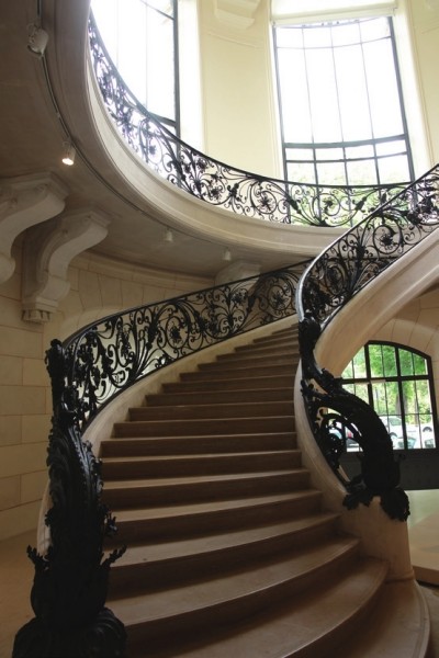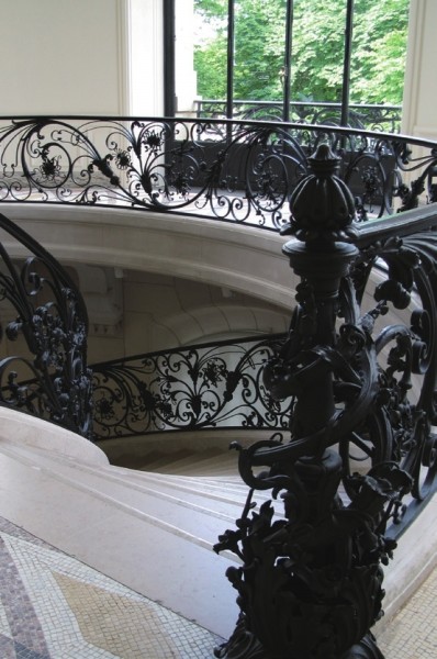 穿行在欧洲大街小巷中,我们的视线常常被黑色铸铁艺术所吸引。那种细密精致、犹如藤蔓缠绕、轻盈流畅的铁制围栏,镶嵌在阳台和窗户的边缘,为建筑里面的空间增添了几分想象。远远望过去,像是给石材建筑披上了一件黑色蕾丝外衣。 铸铁艺术是欧洲人的骄傲,蔓延在城市的细节中,从门窗、围栏、各类公共设施,到建筑顶棚和墙面都有铁艺的踪影。在伦敦的维多利亚·阿尔伯特博物馆里有一个铁艺展区,搜集了一大批各时期经典的铁艺作品。 活跃于1880到1910年的新艺术运动,对铁艺发生了很大的影响。西班牙建筑师高迪(Gaudi)就对铸铁情有独钟,他在巴塞罗纳古埃尔新宅的铁制拱门和米拉公寓的阳台围栏和大门等,都大胆设计了模仿自然界而又奇妙瑰丽的铸铁线条,是当时新艺术运动的典型。 如今在巴黎街头徜徉,还可以看到在1900年至1912年之间,新艺术风格建筑师吉马赫(Guimard)采用模仿植物花草藤蔓的装饰手法,为巴黎地铁创造的86个经典的地铁出入口。其中阿贝斯站(Abbesses)出入口建筑整体采用铸铁结构,他采用模仿花草藤蔓生长的结构线条将围栏、顶蓬、信息牌等设施形成一体,前端的扇形挡雨板优美地伸展打开,如同一把蕾丝边的折扇,将新艺术风格展现得淋漓尽致。 我一直无法忘怀的是巴黎小宫殿中旋转楼梯的铸铁扶手,充满安详柔美的气息,黑色的卷叶草线条翻滚流动,带有洛可可时期的女性气质。扶手收尾处的立柱是一组模仿植物生长的藤蔓枝叶雕塑,在背景为落地窗户的逆光效果下,时间可以在这里停留。 铸铁工艺作为建筑的支撑结构,是从1851年英国伦敦的水晶宫开始的,到1889年法国巴黎的艾菲尔铁塔,达到了现代工程技术上的重大突破。艾菲尔铁塔是由4根与地面成75度角的巨大钢铁支撑结构形成的,整体呈抛物线形跃上蓝天。当我第一次来到铁塔下,抬头仰望这座钢筋铁条的巨大建筑时,看到无数根粗细不同的黑色钢铁线条相互穿插联接,形成了美轮美奂的线条世界。在天空逆光下的黑影里,俨然是一座黑色蕾丝建筑,这种通透的视觉效果使钢铁结构的笨重感荡然无存,其优雅妖娆之感令人惊叹。 铁艺与玻璃的结合又创造了一个新的建筑可行性,建筑原本的厚重封闭感立刻消除,形成采光很好的通透建筑。巴黎老佛爷百货主楼的拜占庭式豪华圆顶以钢铁作为主结构材料,拼接彩色玻璃,将自然光很柔和地采集入室内。犹如一条欧洲贵族小姐的黑色蕾丝裙,拥有大圆形裙摆和优雅气息。顾客们在圆顶下来来往往,人影绰约,暗香浮动。 作者:章莉莉 公共艺术博士,上海大学美术学院副教授 上海公共艺术协同创新中心(PACC)运营总监 上海非物质文化遗产保护协会 常务理事 致力于推动非遗手工艺、现代设计、当代艺术之间的跨界创新