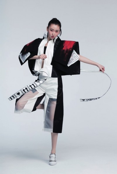 该设计将服饰与物流所特有的视觉符号相结合。一方面,使物流的视觉符号时尚化;另一方面,让人们更多地了解物流在日常生活中的重要性。同时,也号召人们关注物流所产生的资源浪费,希望纸箱与包裹袋能更好地循环再利用。