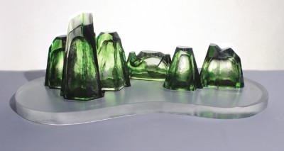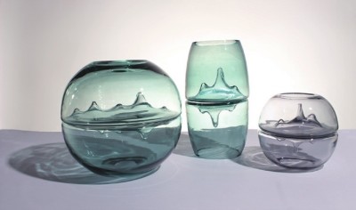 以“中国山水”作为创作元素,通过研究中国著名山峰的形态和特点,运用玻璃透明又若隐若现的特殊效果,来体现山与水之间的相互呼应。在保证玻璃器皿使用功能的前提下,结合山水元素对造型进行设计,使原木简单的造型更加生动形象。