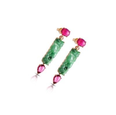孙倩的设计从东方文化中汲取灵感,独具匠心地创作出以黄金为主要材质的高级珠宝系列,耐人寻味。孙倩说,之所以选择黄金,一是黄金温暖的颜色非常适合亚洲人;二是黄金更能贴合东方心理诉求:“我的作品把黄金表现成360度体现结构的立体小雕塑,在佩戴时可以全方向无死角,作品能带给佩戴者生动的参与感。翡翠、碧玺、和田、青金、珍珠、珊瑚都是我非常喜欢的宝石。由心及物、由内而外地展现东方珠宝关于时间、空间、自然、情怀和美的思考与表达。”