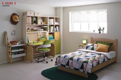 8~13岁时期的孩子,可以说已经长大了。父母可以通过组织家庭集体活动创造生活的乐趣,同时发掘孩子本身的性格特点。儿童房,作为孩子的独立空间,可以发展其自身的个性和能力。但客厅作为家庭成员共处的公共空间,如果还四处放置为孩子学业准备的家具,则容易模糊掉孩子的个性,无法察觉到孩子自身的潜力。另一方面,餐厅也常常被认为是只有妻子可以使用的空间。对此,汉森家居提出,客厅应该是创造家庭生活乐趣的的空间,是家人共同活动的空间,也是孩子和父母进行对话交流的空间;餐厅则应该是家人一起做饭, 吃饭,可以和睦相处的空间;而儿童房,则应该设定成孩子的个性空间,符合孩子的性格和喜好,并帮助其形成正确的学习习惯。