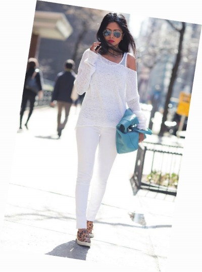 豹纹渔夫鞋搭配一身白色小清新,既时髦又可爱。