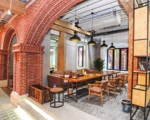 这幢老式的建筑共有三层,Jenny和她的丈夫,将整个联合办公的空间规划成了三个部分。底层被规划为共享空间,墙面是由红砖一块一块堆砌、镶嵌起来的,颇费工事。拱形、红砖和古旧的吊灯,让整个一楼的环境看起来极有老上海的韵味。不过,这个空间却不一味走怀旧风,空间里摆放的,都是极具有现代感的桌椅,按照Jenny的设想,这个共享空间,就像是整个联合办公室中巨大的公共社区,来自不同办公室的人,都可以在这里自由地交流和互动。尤其是饭点之后,每当看着大家在这里玩桌游、聊天,孩子们在一旁学习、玩耍,这些外人看不到的瞬间,恰恰都是Jenny,这个空间的负责人感到最幸福的时刻。