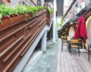 三四年前,Jenny和她的家人踏上了周游世界的旅程,用她的话来说,自己年轻的时候很拼,但是到了一定的岁数,就想到处去走走。直到一年前,她回到上海,看到了这栋在苏州河畔,门牌号“1295”的老建筑。 这栋老建筑在苏州河的沿岸,已经整整经历了一个多世纪的时光,见证着这条河的变迁,也目睹了整个城市历经的巨变。这幢老建筑建于1902年,外观由清水红砖构成,局部以水泥饰面。立面有连续的窗台,窗台的下面是涡卷状的装饰,阳台栏杆的材质是铸铁的,窗间墙有壁柱,整个立面纹饰简洁精美。它曾是上海大亨杜月笙的粮仓,后来又先后成为中国纺织建设公司第五仓库和上海市纺织原料公司新闸桥仓库。等到Jenny第一眼见到它的时候,它却已经是满身斑驳了:“里面空无一物,什么都没有。整个内部整修的过程从去年的十月开始,直到今年的四月才正式完工。整整经历了近七个月的时间。”从去年七月租下这幢老式建筑之后,Jenny和她的丈夫便开始寻思着,将其改造为一个联合办公空间。 历史与现代的结合