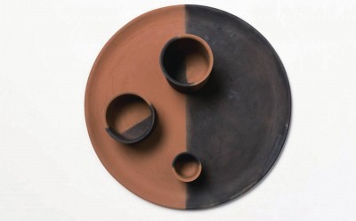 “明火”由设计师Liliana Ovalle和平台Colectivo 1050º共同打造。烧制完红色黏土陶瓷后,他们用沙土掩盖保护其中一部分,另一部分则暴露并放上燃烧的物料。于是,前者依旧红色如艳,后者则留下永久的黑色印记。