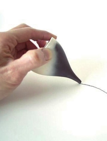 这款陶瓷用石墨和粘土混合烘烤制成。由于顶部配方和铅笔芯一样,所以它不仅是陶瓷器皿,也是绘图工具。通过特殊的烤制方式,陶瓷黑白分离又相互浸染,颇具美感。