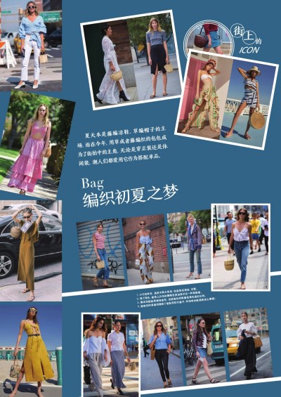 夏天本是藤编凉鞋、草编帽子的主场,而在今年,用草或者藤编织的包包成为了街拍中的主角,无论是穿正装还是休闲装,潮人们都爱用它作为搭配单品。