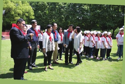 为迎接党的十九大的召开并纪念中国人民解放军建军90周年,由中共上海市委党史研究室、上海市中共党史学会、团市委、上海市青少年活动中心等多家单位共同举办的“喜迎十九大 童心向着党”2017年“红色印记”上海市青少年党团史普及教育系列活动启动仪式在龙华烈士陵园顺利举行。活动请到了中共上海市委党史研究室副主任谢黎萍老师,团市委党组成员、副局巡视员、市少先队总辅导员赵国强老师,上海市中共党史学会会长、上海大学教授忻平老师,上海市青少年活动中心党委书记、主任吴皓老师出席此次启动仪式,学生们用诗朗诵《同一首歌》拉开了本次活动的序幕,学生代表们声情并茂的朗诵,表达了对祖国和党的热爱。 “红色印记”系列活动是为了响应习近平总书记在全国党史工作会议的讲话精神,充分发挥党史“以史鉴今、资政育人”的作用,面向全市青少年开展的党史知识普及教育活动。自建党90周年起,7年内围绕“中国梦我的梦”、“长征胜利80周年”、“中国抗日战争胜利70周年”、“中国共产党成立95周年”等主题,开展了形式多样的活动,坚持以服务学生成长成才为出发点和落脚点,以中国特色社会主义中国梦宣传教育青少年社会主义核心价值观为主要内容,同时融入到青少年的日常学习生活中,更好地激发他们的爱国主义热情。 启动仪式上,由吴筱蓉老师、俞敏老师、王安华老师为学生们佩戴了海防俱乐部徽章并授予了海防俱乐部手册,年士萍老师、薛峰老师、刘敏老师、朱剑锋老师为学生代表颁发了绘画征集活动画纸,以此启动了2017年上海市青少年海防俱乐部和“喜迎十九大——我向习爷爷说句心里话”2017年红色印记晨光杯上海市少年儿童绘画征集活动。在启动仪式的尾声,谢黎萍老师、赵国强老师、忻平老师和吴皓老师为学生代表授予了星星火炬,并共同点亮了现场的希望之火,成为了本次启动仪式最激动人心的时刻。学生们手中的火炬,象征着希望和爱国之心,点燃火炬也意味着爱国精神会以星火的形式,代代相传。 为在青少年中弘扬军事魂,启动仪式结束后,活动现场展开了包括“百人合绘 童心绘梦”、“空军挑战 鹰眼神兵”、“海军挑战 海上风声”等一系列活动。这一系列活动将知识普及、军事挑战与解放军精神融入其中,丰富多彩的活动形式,也让学生们在互动体验中,对爱国主义热情和军人精神有了更深入的理解和认识。 主题活动对海陆空三军任务进行分类。陆军挑战活动中学生们需要完成一条综合挑战——勇敢者道路,包含了冲刺跑、障碍跑、匍匐、跨栏等内容,旨在模拟军事野战训练,锻炼青少年的体能。比赛开始,赛道上的学生们便如同离弦的箭一般冲了出去,穿过独木桥,跨过栏杆,在地上匍匐,有些学生虽然在障碍赛道上摔倒了,却依然坚持到了最后。 “空军挑战鹰眼神兵”也相当受学生们的欢迎,这一次他们要完成的是打靶射击并且回答国防问答挑战任务。一旁的指导老师们细心地指导学生,如何进行有效的射击,学生们不仅全神贯注、身在其中,更是从活动中学到了爱国主义知识。 三军之一的海军挑战“海上之风”在任务的区域设有一面拼图墙,结合了新媒体的方式,将国歌、少先队歌、团歌等歌曲以二维码的形式储存。参与活动的青少年通过扫描二维码,聆听爱国音乐,并将所听到的声音对应拼图贴到拼图墙上。 活动现场,一个长卷轴的画卷引起了所有人的注意。这是一个由学生亲手画成的画卷。主办方希望通过这种形式,让青少年通过绘画,向习爷爷说出自己的心里话,以此来迎接2017年红色印记绘画活动的召开。这一次的活动不仅要让青少年懂得更多爱国主义的知识,体验军魂,更要让青少年懂得如何自主地去表达自己的心声和情感。这样的心声可以是对学习和生活的感受,可以是自己成长中的心愿和烦恼,更可以是对祖国的情感和梦想。也许是龙华烈士陵园的爱国主义气氛点燃了青少年心中的热忱,许多学生在画卷上都运用了红色,并画上了国旗和火炬,以此来表达自己虽然稚嫩但是真诚的情感。以爱国主义知识和军队特色训练内容为基础,丰富的活动形式,吸引了不少在场青少年的热情参与和响应。 对参与这次活动的所有青少年来说,有意义的回忆是暂时的,它只会留在这一天,而爱国精神和拼搏精神是永恒的,它会长久地留存于心。