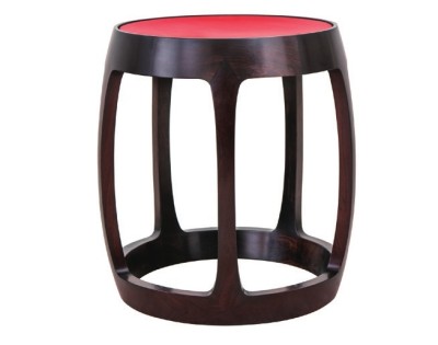 凳子本是传统家具样式。但此鼓凳将伸缩缝延伸至外缘,突破了榫卯结构的限制,微凹的坐面处理,达到舒适与唯美并举。大漆坐面,与漆制系列家具相互映照。取漆之本,借用雕漆工艺,但空而不雕。