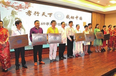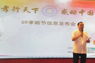由世界华人孝道文化专业委员会举办的弘扬孝道,“六九孝顺节”信息发布会,6月9日在上海虹口虞家宴举办。 在经济发展迅速的今天,重视以孝为先的道德教育,已引起了广大有识之士的高度重视。在“中国当代十大英才人物”陈建辉和《孝行天下》杂志上海联络处的努力下,弘扬孝道举办“六九孝顺节”的建议,得到了有关领导的重视。该会在近期成立了下属的世界华人孝道文化专委会,并决定在明年6月9日正式举办“六九孝顺节”的活动。此次信息发布会是为明年的孝顺节举办做准备。 在这次信息发布会上,有关领导和联合发起人代表陈建辉等发了言。曾被中央电视台评委“中华十大孝子”的王锐也应邀上台发言。发言者众口一词:为建设祖国和谐社会,重视以孝为首的道德教育,应引起有识之士国人的高度重视。百善孝为先,一个家庭,重视了孝,才有晚辈对长辈应有的关爱;才有长辈对晚辈无怨无悔的付出。王锐兄弟为实现父亲生前的遗愿,拉着自制的小车,陪着母亲从黑龙江到海南岛,让母亲一饱祖国发展壮观美景之眼福。以己辛劳,圆了父母的梦,这种孝的精神,值得全体小辈学习! 会议隆重表彰了来自各地的多位孝的先进家庭;为率先在沪外建立的世界华人孝道文化专业委员会数家分会颁发了会牌。会议开得感人肺腑,催人泪下。到会者相信,有党和政府的关心,孝的弘扬必将会造福后人,利于社会的健康发展,在社会各界的关心支持下,祝明年的“六九孝顺节”成功举办。 此次会议,得到了上海虎杖传说还元会所、太极集团天之泉健康咨询有限公司、上海百慕迪再生医学上海有限公司等多家企业的大力支持。