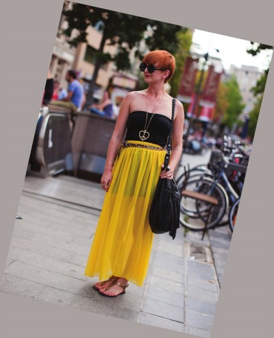连身短裙外罩一条透明纱裙是今年相当流行的穿法