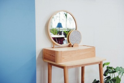 圆滑流畅的曲线,为卧室增添温柔情趣——这样的梳妆台足够赏心悦目,也足够好用。大圆镜和毛毡圆板各有所长,不规则收纳空间拥有更多陈列、收纳的可能性:首饰、化妆品、护肤品、书本、文具等都能一并包容。一桌三用着实可人,也节省空间。