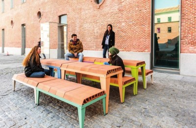 SCHLICKEYSEN是一个模块化的家具制造工艺。野餐桌、长椅、看台座椅等多种类型的室外座椅都可以经过此工艺打造完成。它的特点就是可以自由组合,花式拼接。目前此工艺的第一个产品被安置在马德里孔德杜克文化中心广场。