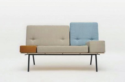 这座丝毫不加掩饰的软垫沙发极富美感。座椅和靠背上设有凹槽,通过垂直插入的钢针可以将软垫固定在沙发上。厚厚的方形坐垫组合在一起,每一次位置的变化都让沙发呈现出不同的模样。