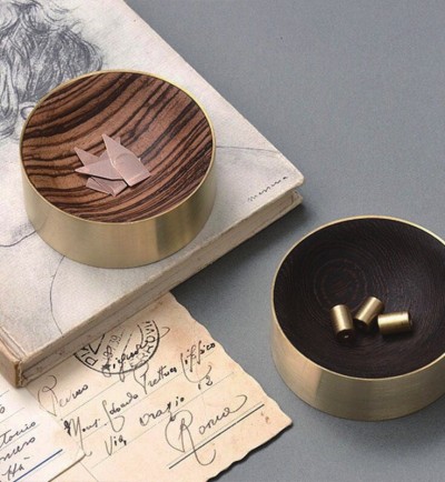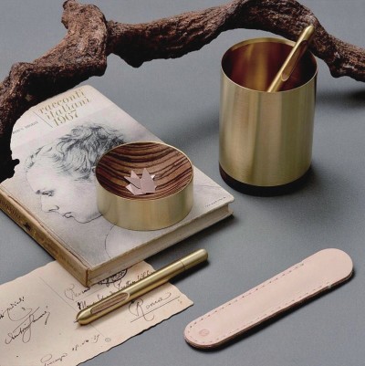 在这款置物盒中,设计师贴心地设置了一颗磁铁,可以吸附各种铁质的小物件。黄铜的外壳与木质的内在,构成了鲜明的对比。对于办公用具来说,这款置物盒低调却又彰显着个人品位。