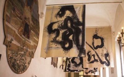 其中,中国艺术家秦风的十幅笔走龙蛇的抽象水墨作品,引人注目地作为特展出现在此次展览上。他的作品灵感来源于十六世纪一位印刷历史上的要人,揭示了日常生活表面之下人的内心景象和深层渴望。文化历史与古老的绘画方式,藉由今天的视角与表现手法,创造了一种记忆、情感、技艺的“文艺复兴”,这也正是此次展览策展人、知名设计师Gentucca Bini女士所说的“用新的当代的方式讲老的故事”。