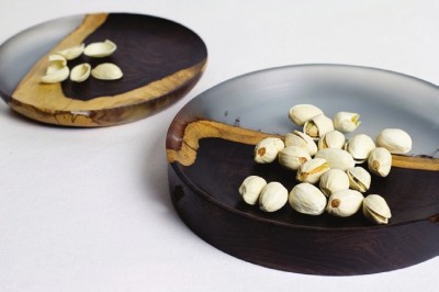 一小一大,一天一地,一对子母盘。它们从被搭配在一起的那天,就注定了彼此间的特殊联系。除了具有独特的紫檀木材质纹理的精致外观,实用性上它们也毫不逊色。有时,它们起到顶盖与容器的作用;有时,它们代表果肉与果壳的分离。