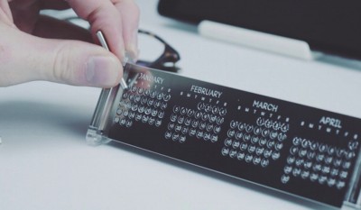 设计师运用自己在金属雕塑作品中开发的技术,创造了这款与众不同的日历。一天结束时,人们可以轻松地将写有日期的活动标签推进去,从而在日历上留下永久的记录,而标签折进去多少代表了这一天发生的事件的重要性。