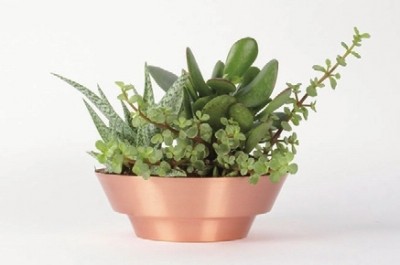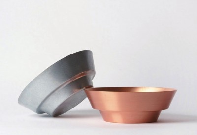 美国加州旧金山的设计师推出了这两个产品,一个是Spun Bowl系列铜制的碗(金色)和钢制的碗(银色),适用于厨房,另外一个是Spun Planter,专门的植物种植器皿。天然的铜与天然的钢,那含蓄的金色与银色不仅贵气,而且与植物分外搭配。
