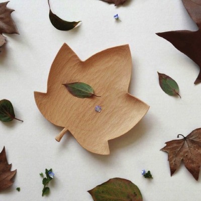 手工雕刻叶形木盘和很多以山水为题材的作品一样,除了写实,也要写意。这款以枫叶为灵感的木盘,通过写意的方式,虽对很多细枝末节进行省略,却保留了枫叶浪漫、纯净的童话气息。