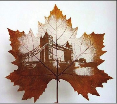 提到树叶,不得不提到叶雕,这门流传久远,又让人叹为观止的技艺。叶雕的匠人们取材叶子,经过防腐、割脉、压平等步骤之后,一片不同的树叶变成了可以自由发挥的材质。匠人们在树叶上刻画精致的美丽图案,或是在其上描摹理想中的图景。一叶一世界,这一番巧手神功让树叶变成了艺术品,也变成了另一个“小天地”。
