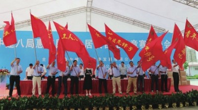 近日,中建八局惠南民乐大居项目2017年立功竞赛推进大会在惠南项目部集中办公区隆重召开。 上海市重大工程竞赛办副主任王国君、市建交工会主席刘选游、市住房保障事务中心党总支书记徐国华以及申拓公司总经理高洪彦、中建八局工会副主席王为兵等领导出席会议。来自各参赛单位的一线建设者、劳务工人代表、媒体记者共300人参加会议。 上海市重大工程竞赛办副主任王国君对中建八局立功竞赛活动给予充分肯定,认为中建八局立功竞赛形式创新、内容丰富、成效明显,展示出了良好的企业形象和社会责任,为上海城市建设作出了重大贡献。市建交工会主席刘选游认为,本次推进大会的召开意义重大,惠南民乐大居项目作为上海市重大民生工程,要打造精品,不断提升居民幸福指数。就立功竞赛活动开展提出了要求,希望实现从要我参与到我要参与,积极作为,依托项目建设,把竞赛活动与企业安全生产相结合,提升员工技能,充分发挥竞赛活动在企业转型、提质增效方面的作用。高洪彦代表申拓公司总结回顾了惠南民乐大居项目建设情况。就开展好立功竞赛加快推进大居建设提出了要求。局工会副主席王为兵希望通过立功竞赛活动,调动员工积极性,增强建设者获得感。以赛创优,争当先行者,争做排头兵。用一流的速度、一流的质量、一流的管理、一流的服务确保如期完工、质量合格、不发生重大安全事故、文明施工目标的实现。 会上与会领导为项目一线建设者赠送了“慰问品”,各参赛队集体进行了安全宣誓,并为党员先锋号、工人先锋号、青年文明号进行了授旗仪式。