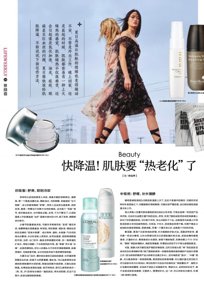 夏日高温让肌肤的情绪也变得躁动不安,不管是外出工作,晚上回家,还是晨起的时候,肌肤都容易有一种上火燥热的感觉。肌肤燥热不仅很难受,还会引起像是氧化加速、油光、痘痘、瑕疵甚至红血丝的问题,夏日想快速给肌肤降温,不妨试试下面这些方法。 初级版:舒爽,即刻冷却 若单纯从皮肤的感受上来说,高温天真的很难熬过。温度高,第一个就是加重出油,满脸油光,与防晒霜、粉底液的“互不相容”,会让你感觉满脸“浆糊”。有些人还会因为温度高,皮肤发烫,像是一种要出汗但憋不出来的感觉。这也是个“危险”信号,既可能会发炎,也可能会过敏。还有,千万不要忘了,让皮肤温度上升的最直接“凶手”是紫外线中的UVB,除了发烫,晒黑晒老也有它。 从情节轻重缓急来说,可能对非常棘手的“发烫”情况来说,喷雾降温法是最直接、有效的。例如雅漾、理肤泉、薇姿这些药妆品牌的“活泉水喷雾”,成分简单、温和、无刺激,气压式的喷头出雾细,水分在皮肤上挥发时,会带走温度,起到物理降温的作用。当然,出门在外,随身没有喷雾的时候,买一瓶常温的矿泉水,用纸巾湿敷一下也有相同的作用。是“常温”而不是“冰镇”,这是有原因的。好比人在满头大汗时吹空调容易感冒,肤温很高时,毛细血管充盈,冰水对皮肤来说不是舒缓而是刺激。 大夏天出门在外,要时刻注意自己皮肤的温度,也尽量别等到事后去补救,防患于未然更重要。譬如说,可以选择具有冰凉感的防晒喷雾来补涂防晒。既能加固紫外线防御,又能为皮肤降温。如果皮肤表面的油脂、脏污特别多,那可以使用多效合一(卸、洗、护)的卸妆水擦拭一遍肌肤后,再补涂防晒。在这个过程中,皮肤也能得到舒爽感。 中级班:舒缓,补水镇静 能明显感觉到因为日晒皮肤温度上升了,这还不是最坏的情况,可能在你的即时补救措施之下,问题能暂时得到缓解。可能比较严重的是,自己都没感觉到肤温正在上升。 绝大多数人在夏天都会感到皮肤出油比以往厉害,于是会选择一些控油产品来护肤,化妆时也会更注重干粉的定妆。然而,在用了散粉或粉饼后却发现鼻翼上多出了好多翘起的皮。它们极不听话,怎么压都压不下去。这就是因为肤温上升导致皮肤脱水状况加剧导致的。只控油、不补水,皮肤就会变得干燥。长期干燥会让皮肤的纹理变得粗糙、质感变差。所谓一个夏天老三岁,这就是个不好的开端。 敷面膜,算是个比较有效的舒缓、补水镇静的护肤方法。面膜多种多样,夏天敷一些成分精简、以补水舒缓功效为主的面贴膜比较合适。皮肤会瞬间感到清凉,大量的水分、美容液成分去浸润、渗透干燥的角质,安静地敷上个15-20分钟,“强制”喂肌肤喝饱水,角质变得健康,所谓的炎症因子才不那么容易被激发。 可是,面膜大多只能在夜护理的时候使用,白天已经被太阳“烤”热的皮肤应该如何及时得到修护呢?除了提到的使用一些能即刻提供清凉感的产品进行舒缓之外(因为即刻舒缓类产品大多都无法真正补水),应对角质层“脱水”、“中暑”现象,可以随身常备一款保湿啫喱。透明质地的保湿啫喱,可以随时通过按压的方式为皮肤补充水分和油分。常见的用于化妆品中的高科技“微胶囊技术”,能把水分包裹在微胶囊里,在涂抹于皮肤之后破裂开来,释放水分。这样的好处在于,既不会造成皮肤油腻感,又能深入、慢慢地补水。这一步,可以在卸妆水擦拭、补擦(喷)防晒之前做。 进阶版:舒适,防热老化 “热老化”是个新词汇,它与“光老化”同根同源,都是源于紫外线,并且最终都指向着“老化”这个肌肤终极问题。但“热老化”很好应对,让皮肤不要一直这么热就可以了。据国外的研究资料说,皮肤最适宜的温度是比体温37摄氏度低6摄氏度,即31摄氏度。 说白了,舒适,才是防止热老化的关键。出门打伞、带上大檐帽、尽量不要刻意地去晒,这些“略带矫情的细节”才是抵御老化的主力军。 若不小心还是“热老化”了该怎么办?那先来看看会导致哪些问题,与光老化最大的区别在于,热老化主要导致的皮肤问题是这三个:毛孔扩张、皮肤干燥、骨胶原合成下降。前两项所有人都能想到,人们对所谓的“夏季补水”做得也很勤快,用喷雾、敷面膜倒是都不落下。但只补水、一味地追求清爽护肤,却很容易忽视了第三个问题——骨胶原合成下降。换句话说,就是所谓的“一个夏日老三岁”,皮肤开始垮塌了! 皮肤“骨胶原”的问题,历来都很棘手,几乎没有什么护肤品可以短期内解决这个问题。能做的,一个是预防,另一个是不间断使用抗老护肤品。没错,夏季也要坚持抗老。大多数护肤品中所谓的“补充胶原蛋白”,大多都只能起到滋润保湿作用,胶原蛋白还是得靠身体自己产生。但有一些护肤品,的确具有激发皮肤胶原活性,促使细胞更新的作用。这个,才是真正的抗老产品。