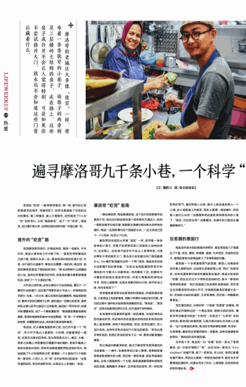 摩洛哥的老城区大多像“迷宫”一样,密布着一条条狭窄的小巷子,而巷子的两旁则是三层楼砖土结构的房子。走在路上,这些房子或许并不会让人觉得特别,可是如果你不尝试推开大门,就永远不会知道这些门背后藏着什么。 资深的“吃货”一般有两种情况。 第一种,家中的父母都是厨艺的高手,耳濡目染下,自然也就提高了对吃的品位和要求;第二种情况,家人不善厨艺,反而激发了个人对“吃”的好奇心,从而“基因突变”,成了一代“吃货”。梅迪说,自己属于第三种,这种吃货的名称叫做“半路出家”型。 意外的“吃货”路 说到摩洛哥的旅行,对梅迪来说,算是一场意外。今年年初,梅迪从原来的工作中辞了职,一直都在寻思着给自己放个假,到国外去走一走。原来的目标锁定在意大利,可是,由于碰巧正值春节,等签证也需要一段时间,就这样,免签的摩洛哥就成了梅迪的新目标:“我也没有做什么很精细的计划。虽然住所是事先定好的,但是每天要去哪里都是随机的,就定了一个大概的行程。” 大约在三四年前,还在从事设计行业的梅迪,遇见了一个餐饮行业的客户。这位客户希望在设计中加入一些食物的相关照片,可是,一时之间,难以找到合适的摄影师。梅迪思前想后,最终决定自己撸袖子上阵,谁知道这一拍倒让他发觉,拿照相机这事儿似乎比做设计还有意思。随后的一两年时间,他便开始慢慢转型,成了一个美食摄影师:“美食摄影更像是静物摄影,表现的是食物和食材本身的美感。‘吃’是一个非常庞大的体系,你慢慢深究进去,会发现它其实很有意思。” 梅迪说,在从事美食摄影师之前,自己并不是一个“吃货”,至少并不是从小就爱吃。小时候,印象最深的一道菜,还是东北家乡的凉菜。因为母亲是北方人,黄瓜、大葱、香菜之类蘸上鸡蛋酱和豆瓣酱炒成的酱料,是每天餐桌上都会出现的必备菜。而转型成美食摄影师的这段时间内,梅迪接触了不少料理界的大师,看着每一个小笼包打几个褶都有一番讲究,久而久之,对“吃”也开始有自己的追求:“还是耳濡目染吧。而且吃到好东西,总是会让人幸福的。”他说。 摩洛哥“吃货”指南 一落地摩洛哥,梅迪就感觉到,这个地方和他想象中的显然不同。首站拉巴特的房东是个很有音乐天赋的人,他和一群朋友随手抄起乐器,就能配合演奏出相当有当地特色的音乐。梅迪一边刷新着对这个国度的认识,一边又给自己定了一个小目标:吃足三个礼拜。 摩洛哥的老城区大多像“迷宫”一样,密布着一条条狭窄的小巷子,而巷子的两旁则是三层楼砖土结构的房子。走在路上,这些房子或许并不会让人觉得特别,可是如果你不尝试推开大门,就永远不会知道这些门背后藏着什么。Nur餐厅就是藏在这样一个窄门背后,梅迪后来在回忆这家餐厅的时候写道:“本地走地鸡配墨西哥香辛料调味的可可酱令人印象深刻,鸡肉嚼劲十足,和原味可可酱的苦配搭还是蛮奇妙的。侍者大概看我吃得有点辛苦,特地上前解释:这是本地最好的Berli鸡,每天在地上跑,鸡肉老结实了!” 塔吉锅是摩洛哥当地典型的料理器皿,把蔬菜铺在锅底,上面再加上肉或者素食,用数十种香料与食材进行匹配,烹饪的过程中,锅中的水始终保持蒸腾的状态。“塔吉鱼”、“塔吉羊”,这种当地典型的烹饪方式,似乎适用于各种食材。 各类烧烤也是摩洛哥值得一吃的美食。当地的烤肉会把肉揉成肉饼,然后将肉饼或是整块的鸡肉放在铁质的网具上直接烤制,烤到干柴的程度。然后,把面包铺开,夹入菜叶和肉,这种形式有点类似于三明治的感觉:“面包也是非常传统的,和我们所说的面包不太一样,更有点像是馕的感觉。” 而让梅迪印象最深刻的,莫过于摩洛哥传统而著名的当地美食——蜗牛。在摩洛哥的大街小巷里,常常能够看到很多卖煮蜗牛的小摊,而且每一家的味道,都会有细微的差别。这些小摊通常有一个大锅,锅里盛满着用香料熬制而成的汤底,翻腾着许多蜗牛,这样煮成的汤料,有一种独特的药材香气。看见有客人光临,摊主人就会递给客人一个小碗,在小碗里盛上半碗汤,再来上满满一碗的蜗牛,然后客人就可以坐在一边慢慢享用这道极具异国风味的小食了:“其实,它的吃法有一点像螺丝,但蜗牛的口感远比螺蛳鲜嫩多汁。” 反差萌的泰国行 梅迪当年读书的时候曾休学两年,将东南亚的几个国家走了个遍,老挝、缅甸、柬埔寨、 越南、马来西亚、印度和尼泊尔,泰国的食物也给梅迪留下了非常深刻的印象。 泰国是一个非常喜爱香气的国度,泰国人对喝咖啡这件事儿情有独钟,当地有众多能称得上是“网红”的咖啡店,这些店通常都对咖啡有着极致的追求。梅迪也和他的“老餮”朋友走访过不少有特色的咖啡店,其中一家咖啡馆特别有意思:“他们用装威士忌的酒杯来装咖啡,而且旁边还放着装有球冰的小杯子。你就感觉像是在喝威士忌一样。但咖啡本身的味道呢,又非常清爽,而且有一种酸酸的果香味。” 而在清迈附近,也有这样一个极具“反差萌”的餐馆。那是在清迈市集附近的一个路边场地,钢筋水泥的结构,看起来有些像是当地的“大排档”。但是这个“大排档”却相当特别,服务员们身着西装,以极为端庄的礼仪为客人们服务:“这个店里卖的食物,是当地非常新鲜的海鲜,有龙虾、生蚝等等,服务员还穿着西装在一旁服务,这种反差感就特别奇妙。”梅迪回忆的时