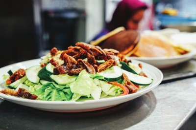 各类烧烤也是摩洛哥值得一吃的美食。当地的烤肉会把肉揉成肉饼,然后将肉饼或是整块的鸡肉放在铁质的网具上直接烤制,烤到干柴的程度。然后,把面包铺开,夹入菜叶和肉,这种形式有点类似于三明治的感觉:“面包也是非常传统的,和我们所说的面包不太一样,更有点像是馕的感觉。”