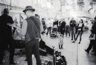 “我喜欢的是不会说谎的黑暗,眼中看到的黑色,也许回应出了白色,黑白才是人生真实的颜色。” 最能感动人的图片都在你生活的周边,上班的途中,陪伴的家人,周末逛的市场,如果这些都忽略了,是人生的遗憾。 庞德笔下的地铁是这样的:“人群中这些面孔幽灵一般显现/湿漉漉的黑色枝条上的许多花瓣 ”。只有两行却成了意象派的代表作。 果巍用胶片记录的堪培拉老公交车站市场,也同样给人浓烈的意象派感受。照片上时而强烈时而含蓄的颗粒感,把集市上的人来人往投射在那些仅仅看过图像的观者心底。身临其境的现场感犹如时空转移般地包围着每一个看到图片的人。市场已有40年的历史,时间过往,来来往往的人无从统计。但是时间在这个市场用无形的气质影响着每一个来访者,任时光荏苒,我淡定不变。果巍拍摄的老公交车站市场立足点不大,但是却如一个符号一般,如此深刻、如此标志性地告诉你:“看,这就是在原始的太阳底下和浩瀚的海水争辉的澳大利亚”。 Qa 果巍 纪实摄影师 Q:在堪培拉老公交车站市场拍摄这么多时间,什么样的细节会吸引你的注意? A:堪培拉老公交车站市场是堪培拉这个城市地标性质的旅游地点,每周日开放,都是集中在艺术品、手工制作这方面,市场已经有40多年的历史了。我拍摄这个以市场为主题的项目已经持续了两年,如果工作生活没有变化,大概是要持续拍摄一辈子的项目。关于市场的拍摄,我一般都乐意处在旁观者的角度,不介入拍摄对象。在市场这个氛围里,人是放松的,最容易表现自我,其实澳大利亚这个国家并不像中国,两年的时间并没有改变太多,也许5年、10年以后比较下来意义会更大,如果说有变化,就是大约两年前几乎没有华人来逛或者来摆摊,现在华人面孔很多,还有华人在这里摆摊,卖云南的红茶,卖中国的小吃。 Q:定居者和游客,对澳大利亚的感受有什么差别? A:我也旅游过一些地方,旅游者的角度和本地人观察的角度是不一样的,从摄影师的角度来看,最能感动人的片子都在你生活的周边,上班的途中,陪伴的家人,周末逛的市场,如果这些都忽略了,是人生的遗憾。澳大利亚这个国家,market是一种文化象征,每周,每月,在全国各个地方都有定期的集市,所以拍market是观察本地人生活的一种最好的方式。 行摄手记 梦想开始成真 第一次看到Lucy唱歌大概在两年前的Old bus depot Market,她的歌声淹没在了小贩的叫卖,噪杂的行人声中,后来甚至有商户投诉她的表演,觉得她的歌声完全没有热闹感,听着不舒服。在Exhibition Park的food court,她一个人站在烤肉摊旁边的一个角落静静地唱歌,旁边伴随的是孩子的哭叫声,烤肉摊的烟气。在Hall Market雨后泥泞的路上,伴随她歌声的是鸡鸭的叫声。 后来,一天清晨,老婆兴奋地告诉我,十五岁的Lucy上了Australia Voice,而且三个导师为她转身,这一刻我有点小小的激动。梦想已经开始成真。