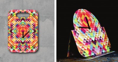 来自葡萄牙的Pedro Gomes Design公司设计了这个系列时钟。它有着漂亮的数字艺术色彩与图案,仅仅通过折叠,就可以让时钟从挂钟变成桌面摆放形式,并且这个过程没有任何材料损耗。整个设计选择可回收的材料,坚持可持续发展的环保理念。