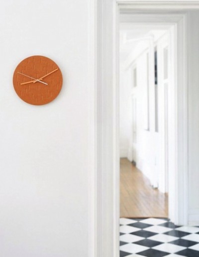 Eggpicnic公司设计的这款时钟是用拆迁废弃建材打造的。凝聚记忆,记录时间,保留城市的灵魂,便是这款钟的意义。把拆迁所得的红砖打碎成粉,与生物树脂结合,制成最外层表盘。 上面两层时针转盘和分针转盘由竹木打造。