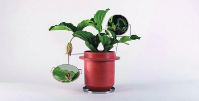 这是一系列手工缠丝的陶瓦罐作品。一些附加在瓦罐花盆上的铁丝为花盆之外的其他植物提供一个共享空间。叶下的放大镜,给人更仔细观察植物的机会;反光镜展现了植物的多样美丽;网状结构为攀爬植物提供媒介,所有装置聚合在一起形成微气候。