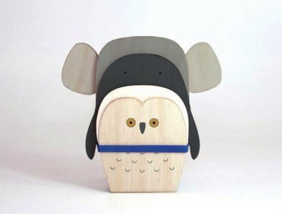 此系列共五件双面打印的平板,可组合成为多种不同的动物:企鹅、猫头鹰、大象,组成了非常巧妙有趣的“动物园”。简单的平板插片轻松地唤起人们对于童年的怀念与向往。