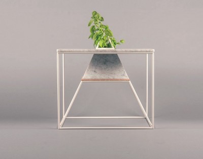 这款灵感来自外太空试验植物胶囊的几何美感茶几Sputnik-5造型,可以简单理解为一个被大金字塔刺破的方体。方体桌面上露出另一个“小金字塔”,可以作为植物生长空间。绿色的卷曲枝叶与硬朗的茶几线条交织,形成了美丽的反差对比。