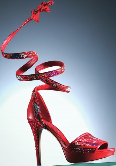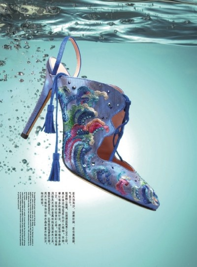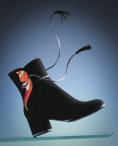 7月,巴黎高定时装周,一场名为“山里江南”的大秀,以强烈而时尚的中国元素,颠覆着所有人对于中国风的理解。而模特们脚上的sheme苗绣高跟鞋,更是步步生花,让观众们赞叹不已。 《我的前半生》首播的那一天,Linda接到无数个电话,电话的那头,朋友都在询问她,由马伊琍饰演的罗子君试鞋的场景,是不是就是在sheme的外滩品牌店取景的? sheme的创始人Linda是地地道道的成都人,曾在有“鞋都”之称的成都,从事多年鞋业的进出口加工行业。20年前,她决定创立自己的品牌sheme,意为“she”与“me”紧密相连的友情。而如今sheme这个名字,似乎有了更沉甸甸的含义,它早就与中国风和非遗传承无法分割地融合在了一起,也许早在发源之初,名列四大名绣之一的蜀绣,就为它注入了文化的基因。2011年,sheme为当时访问四川汶川地区灾后重建家园的英国前首相布莱尔夫人送上了一双名字叫“蜕变”的鞋子。在这款鞋上,运用的正是蜀绣工艺。相较于其他的绣种来说,文献对于蜀绣的记载较少,要还原蜀绣原汁原味的技法,除了拜访蜀绣非遗传承人,还要走访各地的博物馆,去找寻为数不多的古蜀绣技艺。 对于各种绣种针法的研究,是持续不断的研究功课,这或许归功于团队众人的共同目标和热爱,也因为Linda对中国传统文化的执着追求。 丝绸之路考察队 此次sheme在巴黎高定时装周上的高调亮相,让苗绣工艺走出深山,站上了世界时尚舞台,引起了大家的广泛关注。而说到与苗绣的结缘,还要从几年前的重走南丝绸之路说起。 2015年,Linda带领设计师、市场品牌人员组成丝绸之路考察队,从成都当年南丝绸之路的零公里起点成都金沙出发,经过邛崃、雅安、西昌、云南昆明、昭通,经过缅甸、印度等地,整整走了半年多的时间。 在这条南丝绸之路上,密布着众多古时用来进行商贸活动的茶马古道,曾经车马繁盛的古道,如今有些早已经人迹罕至、荒烟蔓草,只有当地人,才能准确说出古道的位置所在,而多数只能凭借一张图片或是仅有的资料,在附近不断徘徊找寻。考察队一行人在重走南丝绸之路的途中,探访了秦汉古道、清溪古道。在茶马古道上,依旧可以看见当年清晰的马蹄印、挑夫的手杖、棍子印迹。而当他们已经行到石门古道尽头的时候,遇见了一位当地人。这位当地人看见他们身着自制的艺术化T恤,便友善地与他们搭话,向他们询问来拜访古道的缘由。言谈之间才得知,原来这位当地人便是古道的守护者。守护人邀请大家去他家的小茶馆歇歇脚,又讲了许多普通人不曾听闻的古道故事。Linda听得津津有味,便又冒雨回头,去寻刚才被错过的风景。 诗之美兮,与彼同赏 从南丝绸之路回到成都,这一路所邂逅的种种都幻化成鞋履设计的元素。在鞋上用钻镶出一条南丝绸之路的线路图,或是将一路所遇的繁花绣在靴子上,而它的名字就被取作“繁花似锦”。沿途的许多少数民族风情成了巨大的灵感来源宝库,不同民族的元素被以刺绣的形式,重新演绎在了鞋履之上。 3年前,sheme开始研究新的设计主题,以《诗经》的一首诗歌为主体,提取其中的经典意象和情感,结合传统的技艺,重新进行演绎。比如《鸳鸯》:“鸳鸯于飞,毕之罗之。”就以羽毛比翼的意象,一片清羽寄相思的方式,打造了一季的主题。《蔓草》中:“有美一人,清扬婉兮。”演化到鞋子上,则是清花凝露的模样。《击鼓》中的“执子之手,与子偕老”便运用典型的蝴蝶,具象化地在鞋上寄相悦之意。 以《诗经》为主题的高定鞋款,已经做了整整三年,如今,也正巧赶上了时下的诗歌之风。不过,在三年前的时尚界,它还是小众的选择:“中国风是一个很大的范畴。但是,当你去运用它的时候,既要深入地去研究它的内涵,也要重视对文化本身的建设。”Linda说道。 非遗技艺的新活法 从成都乘坐飞机到贵阳,换长途客车到凯里,再从凯里到苗寨第一县的台江县,要到当地著名的姊妹街,还要乘上数个小时的本地中巴,绣娘们住所所在的真正村里乡间,则从姊妹街开始,还要行上数个小时。杨再美是当地苗绣的非遗传承人,她的外婆也是以一手好绣工出了名,杨再美继承了一身好手艺,也在为苗绣的传承而普及、传授手艺。Linda的设计师团队在国家文化部非遗传承人培训的交流中,认识了她。在她的身上,Linda看到了真实的苗绣是什么样:“和我们以前见过的刺绣非常不同的是,苗绣几乎没有绘画的过程,绣娘们是用剪成的纸片轮廓作为刺绣的基准。如果,不是亲眼去看,就不会知道它是怎么被绣成的。也只有亲眼去看,才能设计出这个绣种能够实现的图稿和设计。” sheme设计师在村寨里与苗家绣娘一起讨论修改设计稿、绣花线配色。 在苗寨当地,绣娘的手艺似乎是一件人们习以为常的事情,因为刺绣就存在于他们的衣服上、生活中。绣娘们不需要什么特殊的工具,就只一针一线,一边与人交谈,一边做着她们自己的绣活儿。杨再美向设计师展示了一种针法,这种针法的特点是刺绣的背面只有绣线的一圈轮廓,除此之外,便看不到任何绣线与针脚,这种针法在苗绣中几近失传。后来,sheme的设计师便将这种针法运用到了一款名为《幸福鸟》的短靴设计中,古老多变的苗绣织绣针法通过这种方式的演绎,具有了时尚的生命力。 这整条绣带运用的正是苗绣特有的工艺“数纱绣”。所谓数纱绣,是绣娘利用布的经纬线进行挑绣,形成的各种几何纹样,再通过色彩