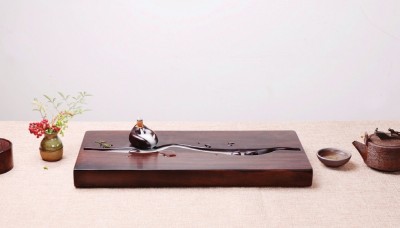 该茶盘为造景茶盘,灵感来源于自然界的山溪,旨在把大自然带回家中,置于案头。该茶盘不仅可以观赏茶水流动造成的小河流水意境之美,使用配套的“香泉石”香座,点燃倒流香,还可以观看向下流动的“瀑布”景象,体会“飞流直下三千尺”的仙境之美。