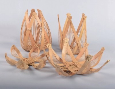 •设计者:李金澤 •专业:工业设计 •指导老师:任丽莎 李金澤在巴黎交换学习时发现,之前学习的几年里,总主动和被动地努力尝试符合西方教育准则的现代设计,却逐渐忽略了来自东方的古老工艺美,他想将隐藏在书本中所谓的传统手工艺和所学的设计理念结合。向台湾竹山草屯的工艺师和米兰Yii展览的设计师们请教之后,李金澤深入研究了竹子这种工艺材料及其现代创作的可能性。而印度莲花寺旅程带给了他灵感,当大自然的曲线与伊斯兰装饰图案的完美结合展现在他眼前时,他有了本次设计的最初草稿。在电脑建模后,他尝试着材料的弯曲度,更改传统竹编设计以契合器皿的造型,竹艺的各个工法以及藤绑的工艺也都得以在器皿上体现。传统竹艺和现代设计的结合运用,带来了耳目一新的感官体验。