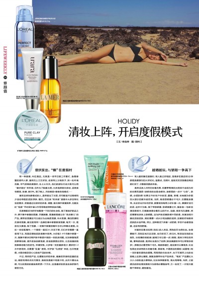 烈日骄阳下,忍不住请上几天假躲懒,而且这个时间也是全家出游的好时间,“清妆上阵”给肌肤一个避暑空间。 度假模式1 昼伏夜出,“懒”在度假村 有一种度假,叫住酒店。尤其是一些平日里工作繁忙,急需修整的都市人群,喜欢约上三五好友,或者带上父母孩子,找一处环境优美、空气新鲜的度假村,住上三五天。他们的游玩行动大致可以用“昼伏夜出”来形容,白天为了躲避太阳,大多选择室内活动,或者索性睡觉、按摩、做SPA。到了晚上,开启晚饭+宵夜在线模式…… 喜欢这类独家模式的人,虽然躲过了太阳,但可能逃不过宵夜和少运动导致的皮肤浮肿、黯沉。在这类“纯休息”度假中大多没有化妆的需求,若能通过比较好的休息、调整,配合集中修复保养,也能及时“抢救”平时因忙碌工作而导致的种种肌肤问题。 在度假前应当好好地整理一下自己的化妆包,除了基础护肤品之外,便于集中修复的面膜、手膜脚膜、 颈膜都是能让你“找点事儿”的产品。携带的面膜还可以细分为去角质面膜、补水面膜、美白面膜和抗衰老面膜。建议使用同一品牌的集中修复套装面膜,每天一次,既放松又美容。除了面膜,一些集中修复的精华也可以带着去度假。比如一些安瓶精华,一个套组一般在14-28支不等,它们并非需要一直使用下去,而是定期给皮肤做集中保养。大约每3-4个月集中修复一次,能集中解决日常护肤中兼顾不到的一些肌肤问题。比如修复角质层屏障功能、提升皮肤的紧致度、促进胶原蛋白活性,以及细胞自我抵御衰老能力的活性。所谓安瓶,大多每一支的量都很少,要求在1-2次中使用完,且需要“足量”使用。对护肤“马虎党”来说,也只有度假,才是你能定定心心涂抹产品的时候。 不过,再好的产品,也要配合好的休息、健康的饮食和适量的运动。晚饭吃得好点无可厚非,宵夜则是能不吃就不吃,白天不愿出去晒,可以在酒店的健身房挥洒一下汗水,这是最好的促进全身新陈代谢的方法。 度假模式2 越晒越玩,与骄阳一争高下 有人喜欢懒在度假村,有人就正好相反,觉得多在酒店待1分钟都是浪费旅行的大好时光。逛景点、拍照片、逛街买买买到最后商店都打烊了,才愿意回酒店休息。 虽然这类人对烈日丝毫无畏,但夏季毒辣的太阳却不会因为你的无畏而温柔!该晒伤的还是会晒伤,该晒黑的一点不“心软”。防晒,必须防晒!如果正午时在户外的话,墨镜、草帽、长袖能为你阻挡大部分的紫外线伤害。当然,高倍防晒霜必不可少,且要随身携带。无论你出汗如何厉害,都要坚持每两小时补擦一次。掌握好技巧的话,这并不为难。除了带防晒霜、防晒喷雾之外,随身备一包卸妆清洁湿纸巾,它能擦掉混合着灰尘的汗水、油脂,保持毛孔通畅,然后厚厚地涂抹上防晒霜。这与护肤后擦防晒不同的是,在清洁纸巾擦拭后的皮肤,其实需要一点水分和油脂的滋润,这能较好地维持皮肤的水油平衡。所以,这种情况下多擦一点防晒,非但不会感到油腻,还会特别舒服。 对喜欢在景点拍照(自拍)的人来说,再热的天也得化妆。妆容要耐汗,否则这地方还没到,妆已经花了,多扫兴。有控油功效的妆前乳,与轻薄的粉底液(遮瑕力可以弱一点)搭配,是持久带妆的关键。要考虑的是,既然化妆是为了拍照(其实美颜软件可以帮到你很多),那就没必要把每个毛孔、瑕疵都遮住,底妆就可以薄很多。化妆包里还应该有防水的睫毛膏、眼线笔、不易脱妆的眉粉(或眉笔)和一支你喜欢颜色的唇膏。再高明的化妆技术,也不可能早上化的妆到晚上还那么精致。就随身携带补妆产品来说,“笔类”产品要比大大小小的粉盒方便得多。比如各种眼影笔、高光笔等等。当然,之前提及的卸妆清洁湿纸巾也很有必要随身带,万一妆花了,一片纸巾就能干净卸妆,避免尴尬。 度假模式3 无水不欢,防水胜于防川 夏天是玩水的季节,小到游泳池,中到水上乐园,大到海边沙滩,这是“无水不欢”者们最爱的季节。但是,与“游泳要注意安全”一样重要的是——水中防晒! 不要以为在水中不会被晒伤,晒到脱层皮的多数与水中活动有关。紫外线能透过水的折射,尤其是海水,让你晒伤、晒老。普通的防晒产品下水时大多“无力”,必须用专门的防水防晒产品,一般此类产品大多会标注可防水的时间。为了避免造成晒伤,在每次下水之前都建议浑身再涂抹一遍防晒。防晒喷雾虽然用起来方便,但也有局部喷洒不均的可能,有品牌给出贴心的建议,在同一地方喷三秒钟左右是最好的。 也不管有没有被晒伤(其实有些晒伤是你当下感觉不到的),在七八月份的沙滩上下过水,晒后修复就是必须要做的功课。如果皮肤有轻微刺痛感,那用冷毛巾湿敷降温会更有用。晒后的第一天并不建议使用美白、抗老等功效性较强的面膜,因为晒后的皮肤较为敏感,成分复杂的面膜产品会让皮肤出现各种问题。纯保湿面膜比较好,或者用活泉水喷雾配合棉片做湿敷也不错。具有抗炎症、舒缓功效的乳液、面霜在晒后第二天使用比较好,先让皮肤的状态稳定下来;若无不良反应,在第三天可以使用美白、抗氧化产品。