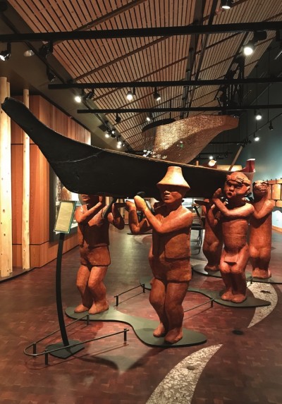 有句话说,一个好的住宿地就是另一个目的地,的确如此。在到达之前,我对这个岛屿的背景一无所知,但是只要在度假村里逛上一圈,就可以对这里的土著文化有一个大概的认知了。墙壁上,挂着许多幅摄影师Edward S. Curtis拍摄于19世纪末的照片,它们真实记录下了当时Suquamish人在岛上的各种生活状态。Suquamish人在艺术、舞蹈和音乐方面都相当有天赋,由当地艺术家制作的挂毯、木雕、编篮等各种大型艺术装饰被巧妙地安排在了各个空间里,充满着浓浓的异域风情,为所有的住客讲述着一个悠远而又鲜活的原住民故事。如果还想了解得更多的话,步行10分钟就可以来到Suquamish博物馆,虽然面积不大,但是非常值得静下心来细细品读。其实,Seattle名字的由来,与当时的一位原住民酋长关系密切:1850年,最早的殖民者来到这片土地,原住民酋长Sealth为殖民者们提供了众多关怀与保护,所以这里最终以他的名字命名了。