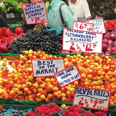 作为全美第一个公共市场,派克市场成立百年来逐渐成为西雅图人最无法割舍的特色,市场内沿途的鱼摊、鲜花摊、水果摊、手工艺品摊都大大突显了西雅图的特色——海、农作、文化艺术。纵使这里已经成为了一座科技大城,但对于自然原始与传统农业却依旧爱护有加。徜徉在这个古老的集市,飞鱼、鲜花、巧克力和奶酪的香气让我们穿越时空长廊,追寻太平洋西北地区最原始的农牧回忆。