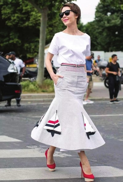 一提到鱼尾裙,许多人脑海里首先闪过的是一大波红地毯上的拖地款,其实,在今年夏天,鱼尾裙的长度正在变短,下摆也在变得更简单,不再注重形式感。它开始像一条略带设计感的一步裙一样,轻松且时髦。