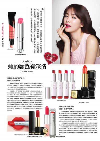 这是个多情的季节,无论你是轻罗小扇卧看星空,还是鲜花、巧克力、情书和电影……不管你愿不愿凑这个热闹,反正临近的七夕让空气都格外甜蜜。涂上最适合你、你也最喜欢的唇色,去约会吧!