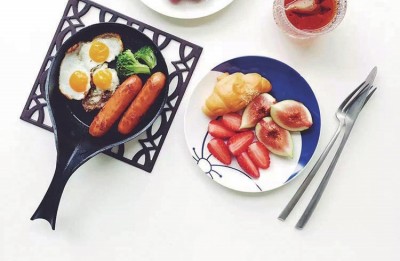 生活用具品牌“晓器”,推出的铸铁煎锅系列充满了趣味。不但造型上仿佛一条可爱的鱼,还有专门为早餐设计的尺寸。这款早餐锅的设计初衷是希望人们在快节奏的生活方式中,适当地慢下来。生活应由早餐开始。搭配的铸铁隔热垫,也很有岁月感。
